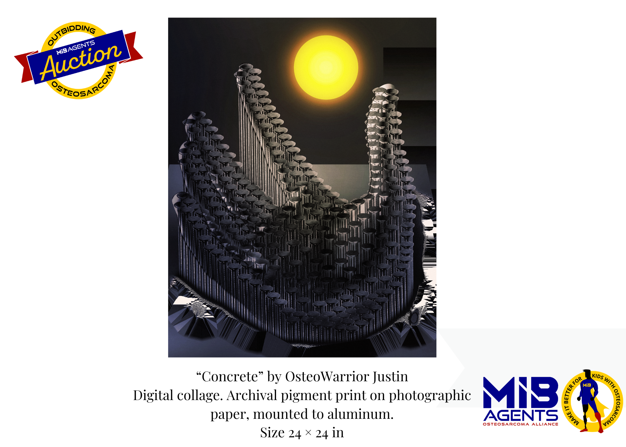 We are honored to share a digital collage donated by Justin, an OsteoWarrior, that reflects his experience during cancer treatment and the strength it took to keep moving forward. As Justin shares, “The art piece entitled Concrete that I am donating relates to my time during cancer treatment. It is based on never giving up, even when the odds are stacked against you.” His work stands as a powerful reminder of resilience, hope, and the strength of the OsteoWarrior community.