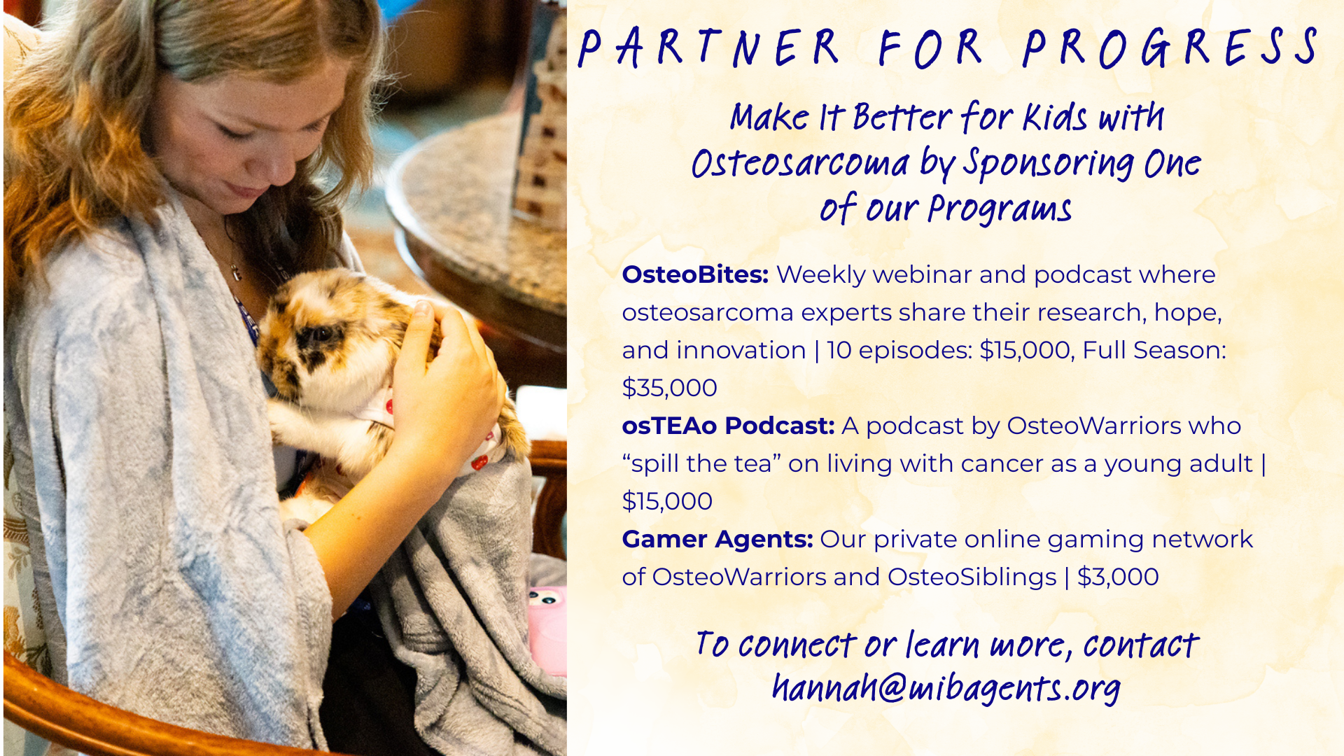 On May 1, 2026, join us for MIB Agents Day of Giving as we celebrate 10 years of Making It Better for kids, families, and the osteosarcoma community. This special milestone is a chance to honor how far we’ve come together — and to power the next decade of hope, research, and support.